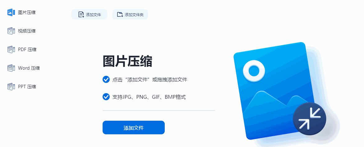 ①工作中需要压缩大量图片,这时候就需要借助【迅捷压缩】工具了,它支持JPG、PNG、GIF、BMP格式的图片批量压缩。