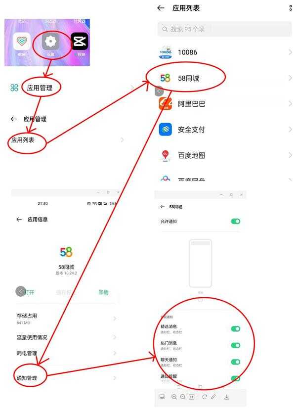 第1种方法:通过设置选项的通知与状态栏的点击,找到通知管理后,在应有通知下面就是手机安装的APP软件列表,如果不需要软件的弹窗提示,点击关闭即可。