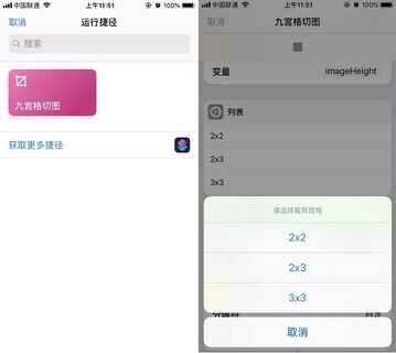 最后再选择运行“九宫格切图”捷径,之后选择裁剪规格,后面的步骤和上面一样就不介绍了。