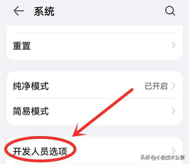 我们首先在手机设置中,找到【系统】设置功能,接着点击把它打开,打开之后我们就可以看到有一个【开发者人员选项】的开关,此时我们选把它打开