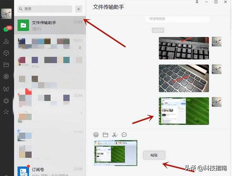 2.利用电脑版微信,打开个对话窗口,笔者一般利用“文件传输助手”对话框,进行“粘贴”,然后发送,另存,也很方便。