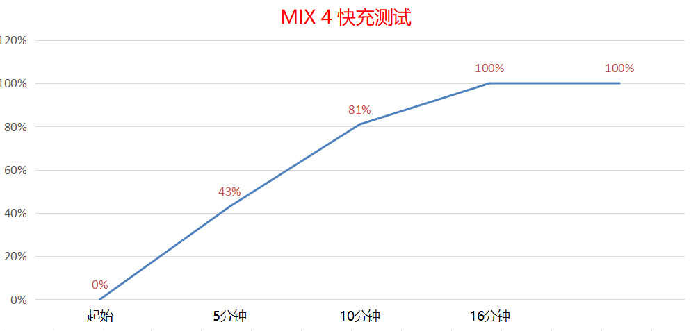 充电速度上,小米MIX 4 的120W表现非常亮眼,在室温不是很高的情况下,快速充电模式可以持续到80%电量,这个速度比大部分快充方案充电模式持续的时间都更久,虽然摸起来会更热,但是毕竟不是三星这点无所谓。