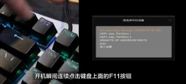 第一个技嘉主板开机连续点击键盘上面的f12按钮