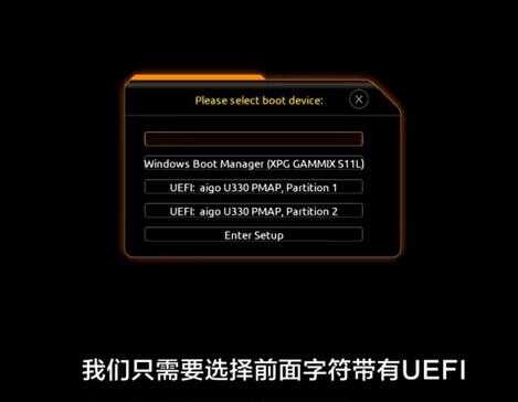 可能会出现很多选择我们只需要选择前面字符带有u e f i中间的字母代表u盘的品牌名称