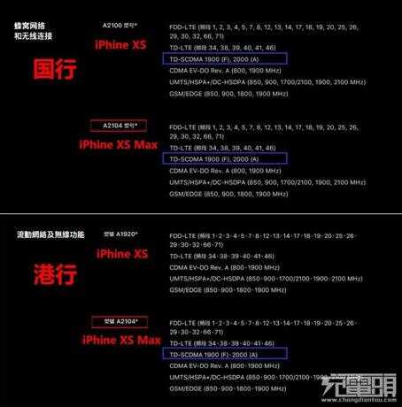 首先,我们已经知道国行的iPhone XS(A2100)和iPhone XS Max(A2104)是全网2、3、4G。