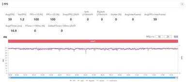 通过专业性能测试软件记录的数据,我们不难看出在满帧60Hz的《使命召唤》游戏中三星Galaxy A53能以58.9帧的平均帧率稳定运行,游戏过程中并未方发生较大程度的卡顿。在游戏过程中,得益于120Hz的高刷屏幕,使操作更加顺滑,屏幕显示几乎没有任何延迟,再配合针对游戏射击类手游的优化,游戏体验非常出色。