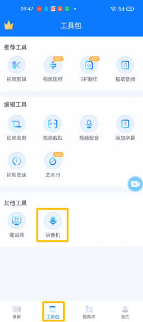 EV录屏安卓版是一款专为安卓手机用户设计的录屏软件,它有一个功能丰富的工具包,录音机就在这个工具包中。