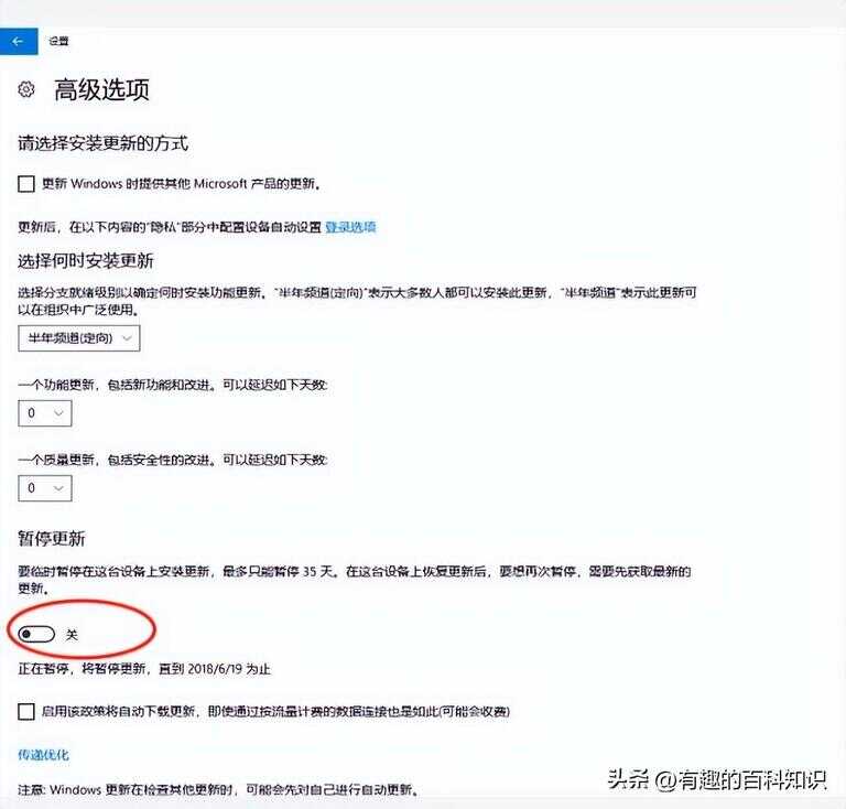 4、点开“高级选项”,可看到更新设置及更新方式。