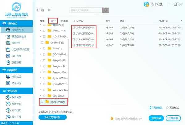 等待软件扫描完成以后,可以通过文件类型、文件路径、搜索文件名等方式查找文件。