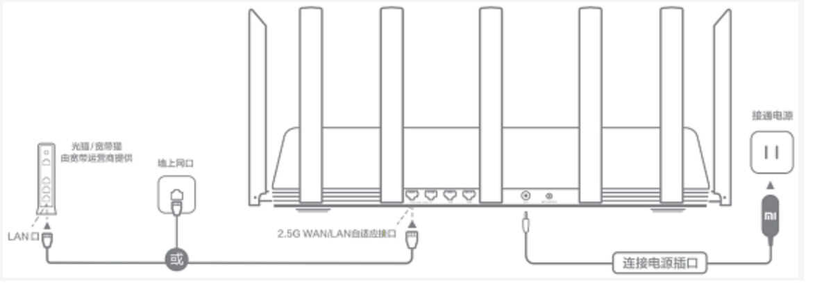 *光猫/宽带猫由宽带运营商提供,如果没有提供,需要将入户网线直接连接到路由器背面的WAN口。