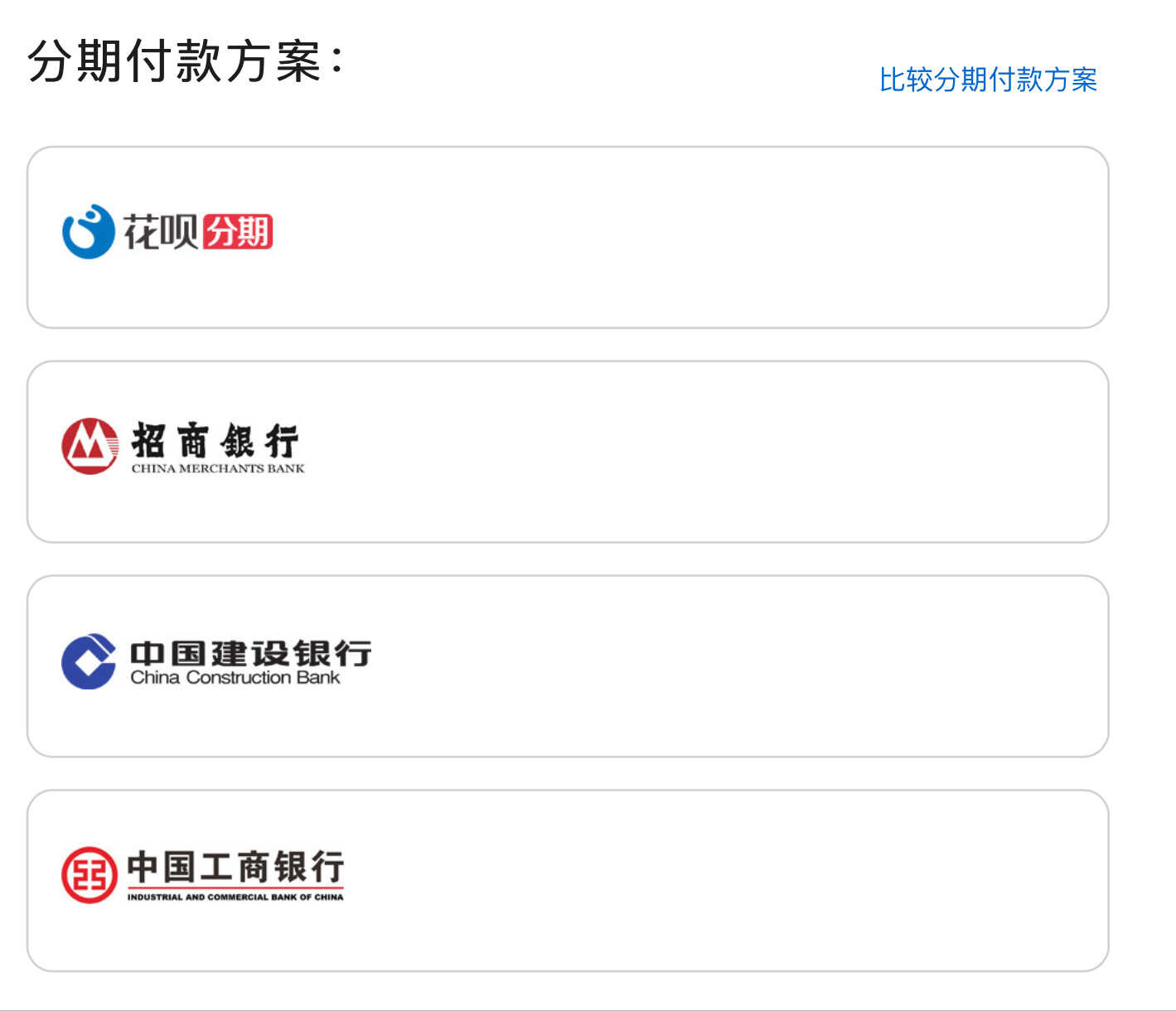 iPhone分期付款并不是必须使用信用卡。购买iPhone手机无论线上线下均可使用分期付款。其中线上苹果官网就支持花呗、招商银行、中国建设银行、中国工商银行四种分期渠道,没有信用卡或者不想使用信用卡用户可以选择花呗进行分期。