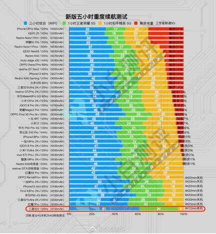 通过上图大家可以看到,iphone13 pro max的续航力压众多四五千毫安时的安卓手机,直接霸榜。