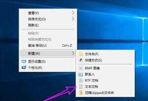 首先,桌面空白处,点击右键,在打开的菜单项中,选择新建文本文档。