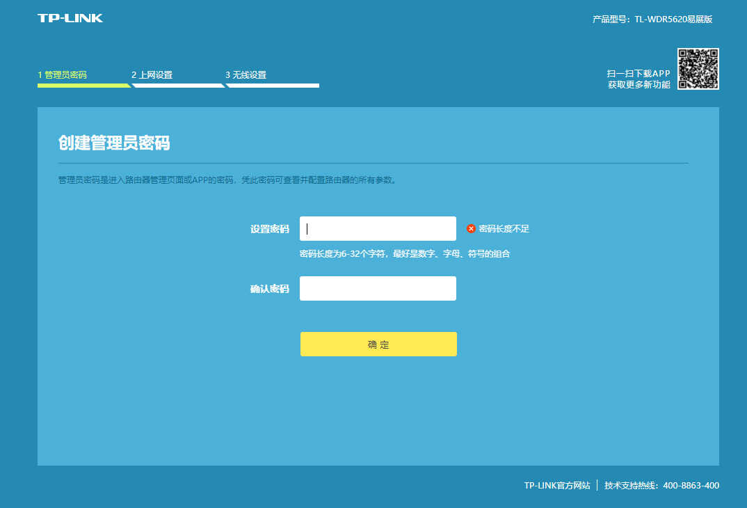 此时设定管理员密码即可进入设置界面。部分老款路由器需要输入用户名和密码才能进入,用户名和密码均为admin。进入设置界面后大多路由器会出现设置向导,一般路由器设置都可以按照设置向导一步步设置完成,具体设置可以参考步骤2.也可以退出设置向导,按照以下步骤设置完成。