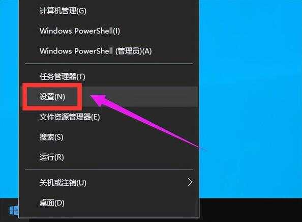 首先,用鼠标右键点击左下角的开始,在弹出的菜单上面点击“设置”选项;