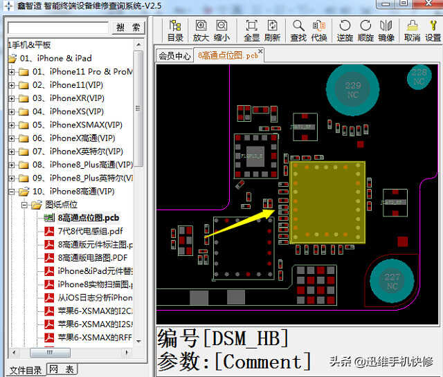 拆机,取出主板,首先观察主板板底,此iPhone8主板竟然真的是劣质彩虹版H3K5板底,给客户报风险开修。首先更换高低分频接收器。鑫智造点位图,如图: