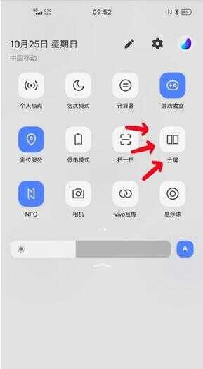 也可以在手机屏幕下滑快捷中心找到“分屏”按钮点击开启。