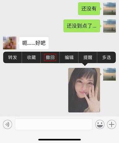 如果想要撤回微信图片,(iPhone X)用户轻触图片,系统则会自动弹出熟悉的菜单,选择“撤回”即可。