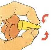 在佩戴泡耳塞之前应清洁我们的双手。将耳塞搓揉成一个没有折缝的、细长的圆柱体,越细越好哦。