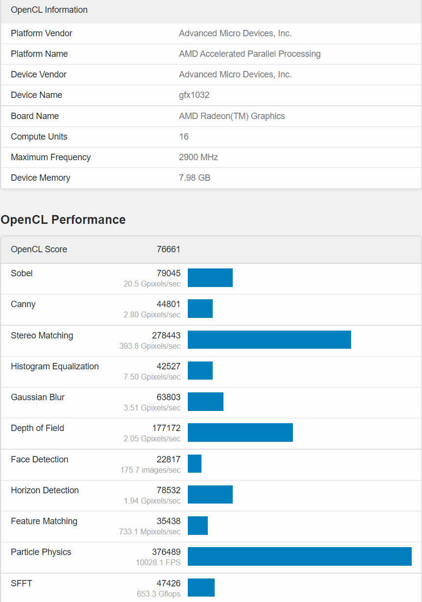 本次曝光的 RX 6600 XT 显卡,Geekbench 5 OpenCL 的成绩为 76661 分,低于英伟达 RTX 3060,比 RX 5700 XT 略有提升,但是其功耗远比后者的 225W 要低,展现了优秀的性能/功耗比。