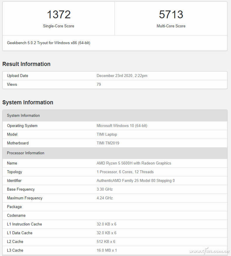 好消息是,即便是锐龙5000H系列中定位最低的存在,锐龙5 5600H依旧跑出了1372和5713的单核/多核分数。