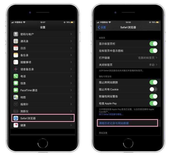 苹果手机自带的浏览器,会产生大量缓存,在设置中找到【Safari浏览器】,然后点击【清除历史记录与网站数据】,这样就能清理缓存数据。