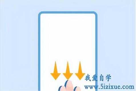 需要截屏时,三个手指同时放在手机屏幕上方,并向下滑动,等待1~2秒出现截屏略缩图后即可成功截屏;