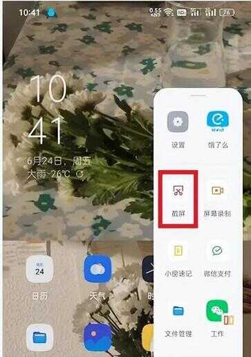 也可以下拉通知栏,找到截屏按钮,点击截屏。