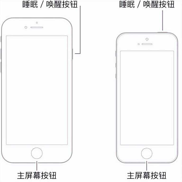 苹果6s及更早机型:一直按住开机键和Home键10s左右手机就会重启,看到手机出现苹果标志以后放开所有按键。