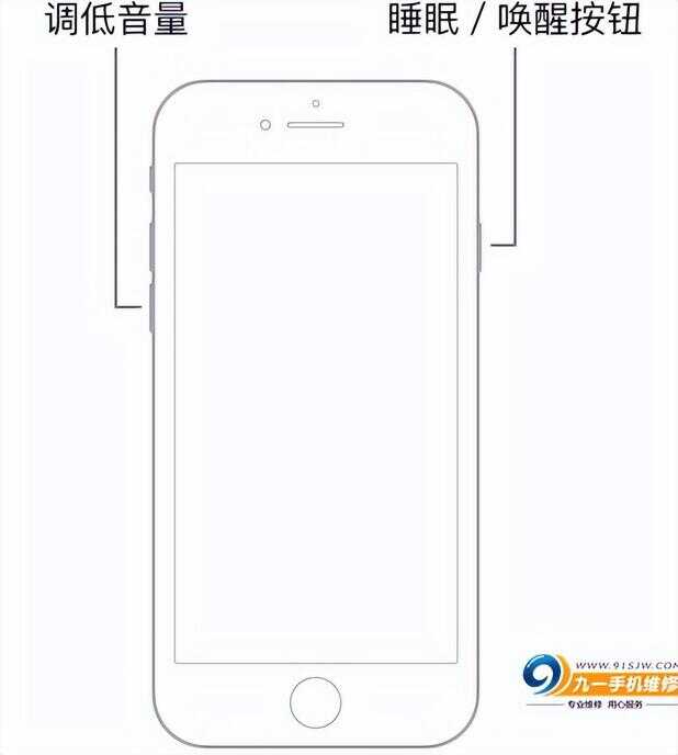 苹果7系列手机:同时按住开机键和音量减少键10s左右手机就会重启,重启以后放开所有按键。