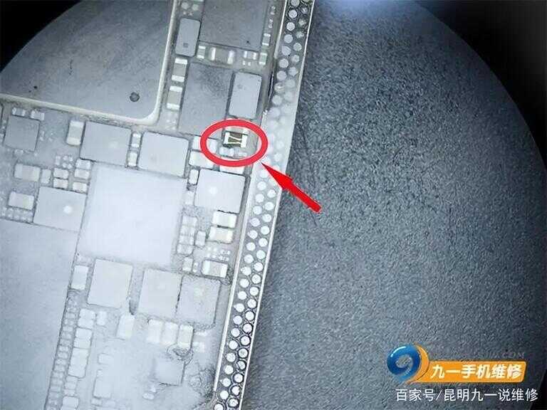 也有部分手机强制重启以后手机依旧没有反应,那么你的手机可能是硬件出现故障,一般常见的硬件问题是主板上某个电容被击穿导致主板短路不开机(如下图所示),类似维修案列小编之前文章有过详细介绍,感兴趣的朋友可以点开查看。