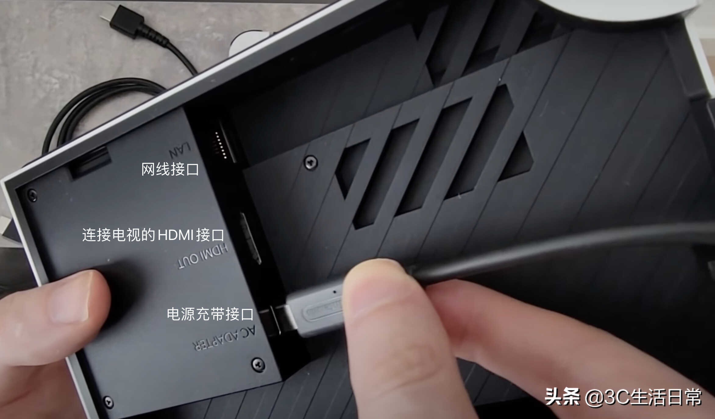插入电源线和HDMI电视线,如果switch主机连接的是无线网,就无需插入网线,直接把白色盖子盖回去。若追求更加稳定的网路,可以连接上网线。