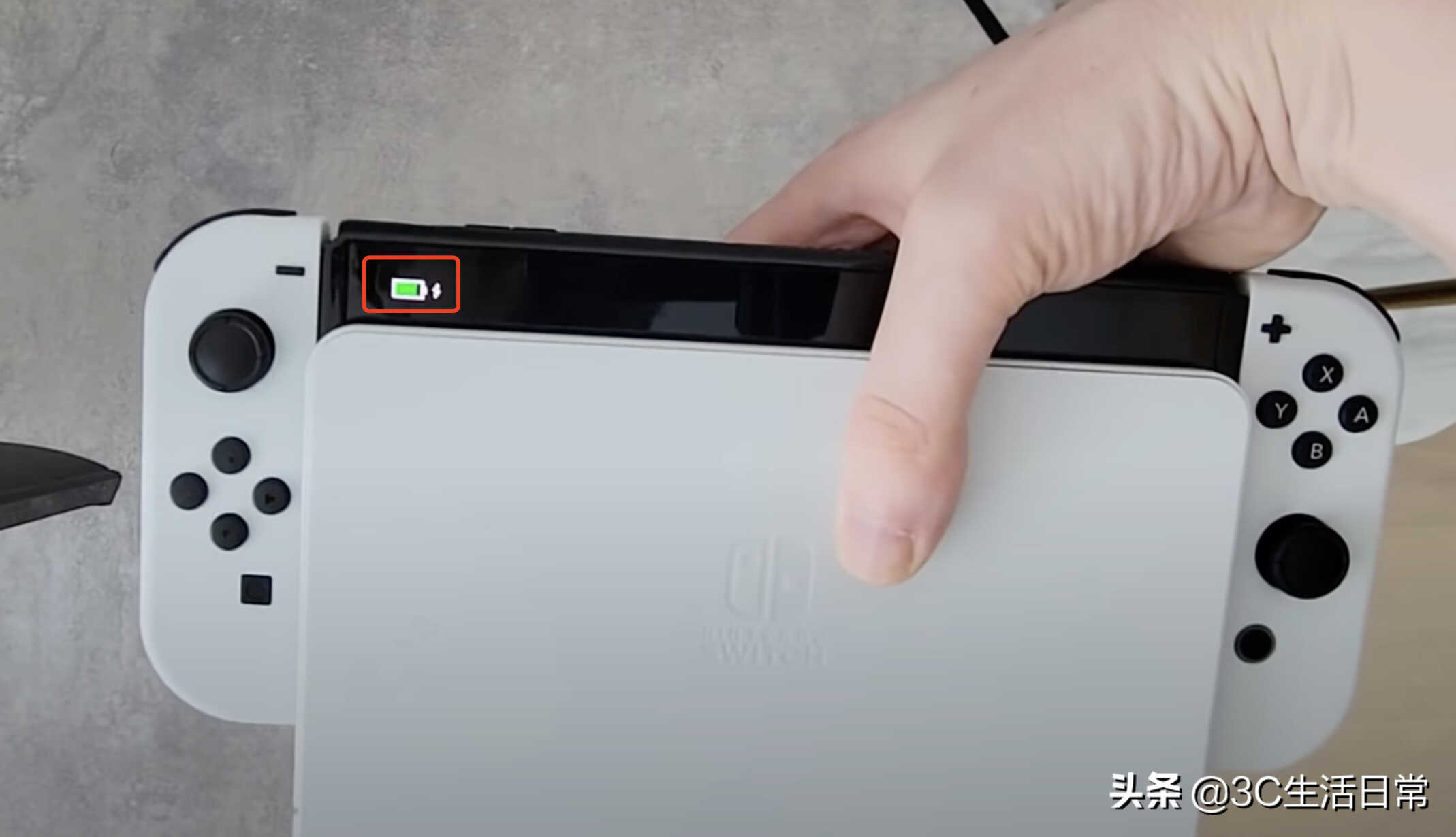 5、把switch主机放到底座上,主机屏幕出现正在充带状态,代表底座正在工作。