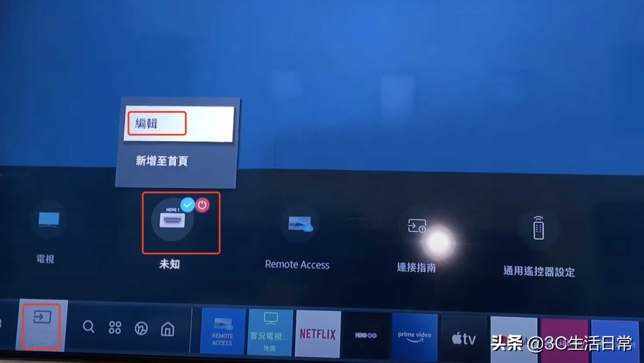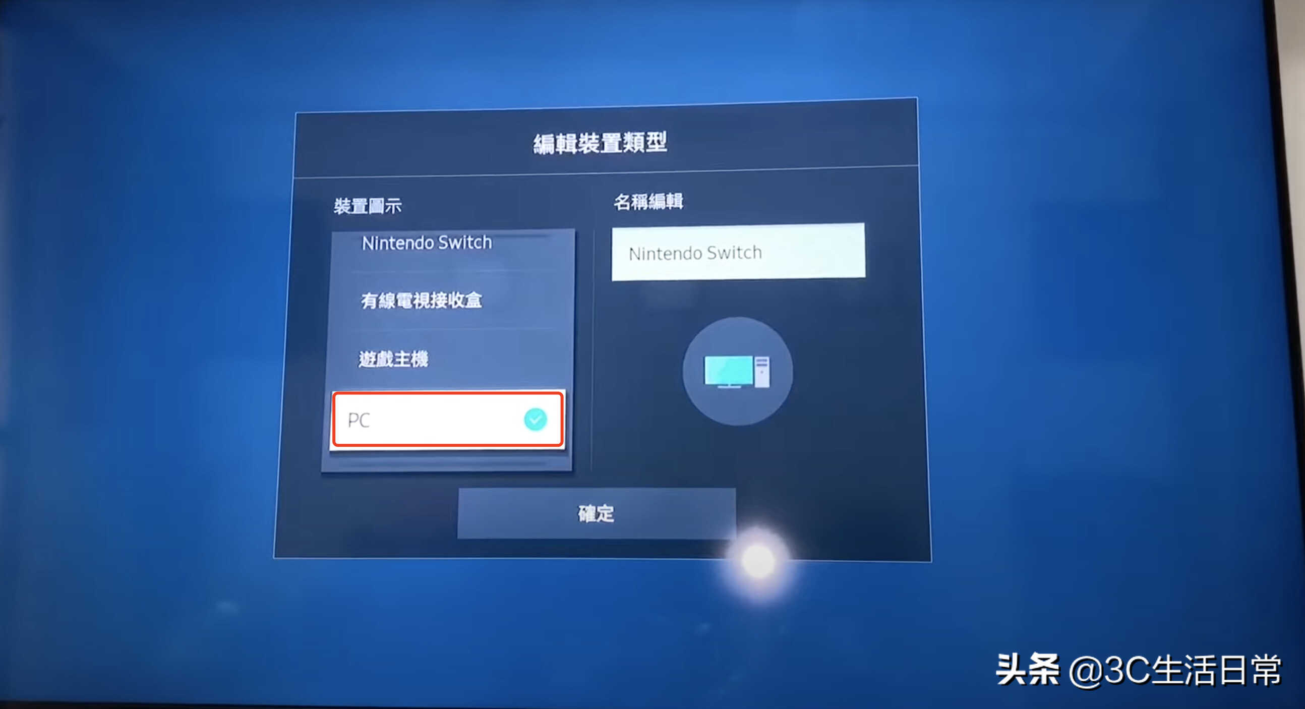注意:如果是三星电视,可能会碰到要对HDMI接口进行编辑,如下图所示,选择“PC”(不要选择“连接主机”)