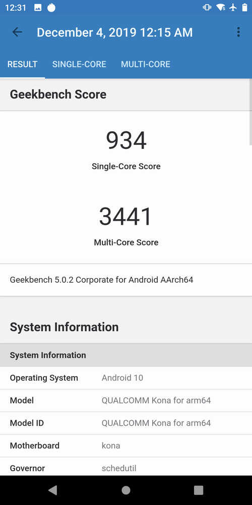 在专门测试CPU性能的GeekBench中跑分成绩为:单核934,多核3441。