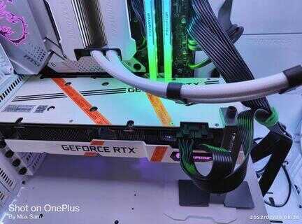 七彩虹RTX3050显卡采用双8PIN供电,虽然3050功耗单8PIN完全可以搞定,不过现在电源的PCIE线普遍有2X8Pin,刚好全给插上: