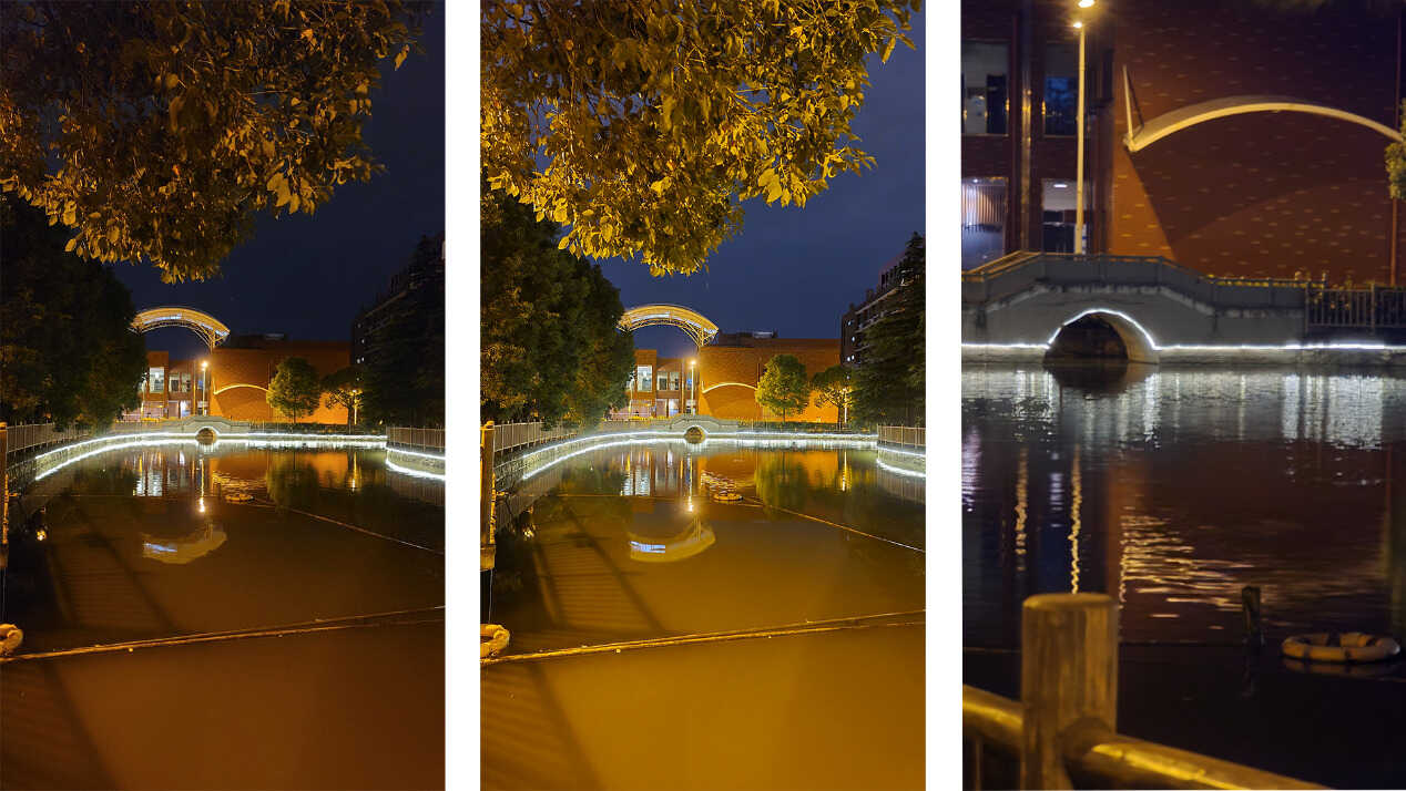 而在打开了夜间模式之后,晚上实拍的样张效果同样惊艳,尽管光线昏暗,拍出来的景物依旧清晰,就好像白天一样。在实拍样张中,图一并没有开启夜间模式,图二开启了夜间模式,图三则是在夜间模式下的5.0x长焦实拍。可以发现在开启了夜景模式之后整体亮度和阴影有着明显的提升,放大后的涂抹感也并不强烈,相信这优秀拍照的背后一定有着三星强大的算法加持和大底传感器的硬实力保障。