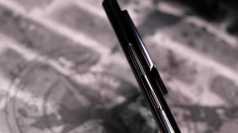 整个机身左侧没有一个按键,平时最常用的音量和电源键都放在了机身右侧,微微突起的设计加上浑然一体的黑色,设计感十足。