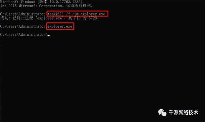 然后再次进入 cmd 输入 explorer.exe 命令重新启动资源管理器进程就好了。