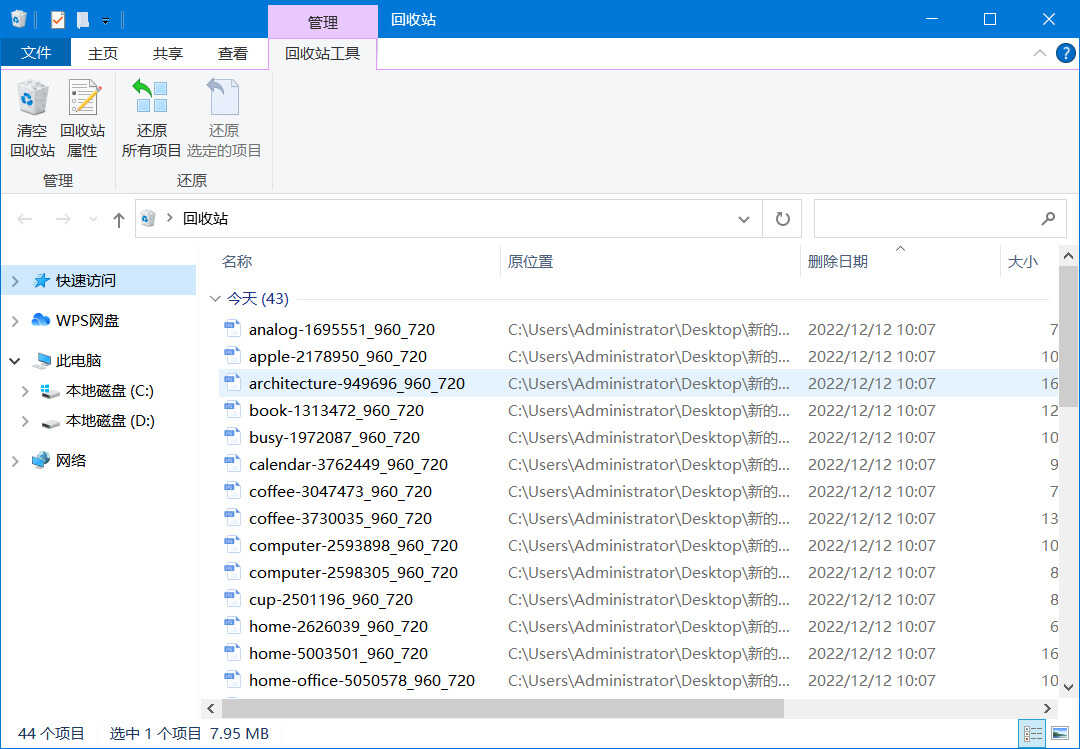 回收站是电脑的系统文件夹,主要用来存放临时删除的文件。万一误删,也可以恢复。