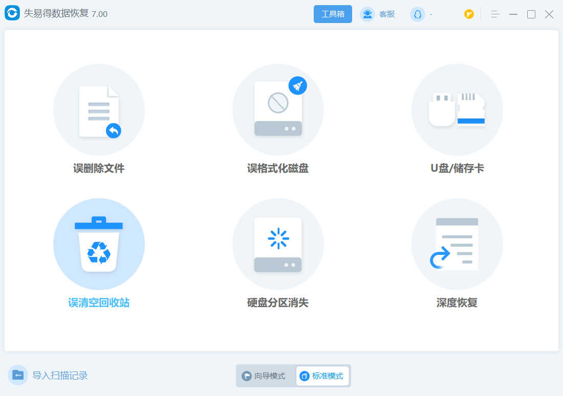 而想要恢复文件,就必须要借助工具,数据恢复软件可以通过留在磁盘上的数据痕迹来恢复数据。下面我们就以一款专业的数据恢复软件,失易得数据恢复为例,就可以找回回收站清空的文件。