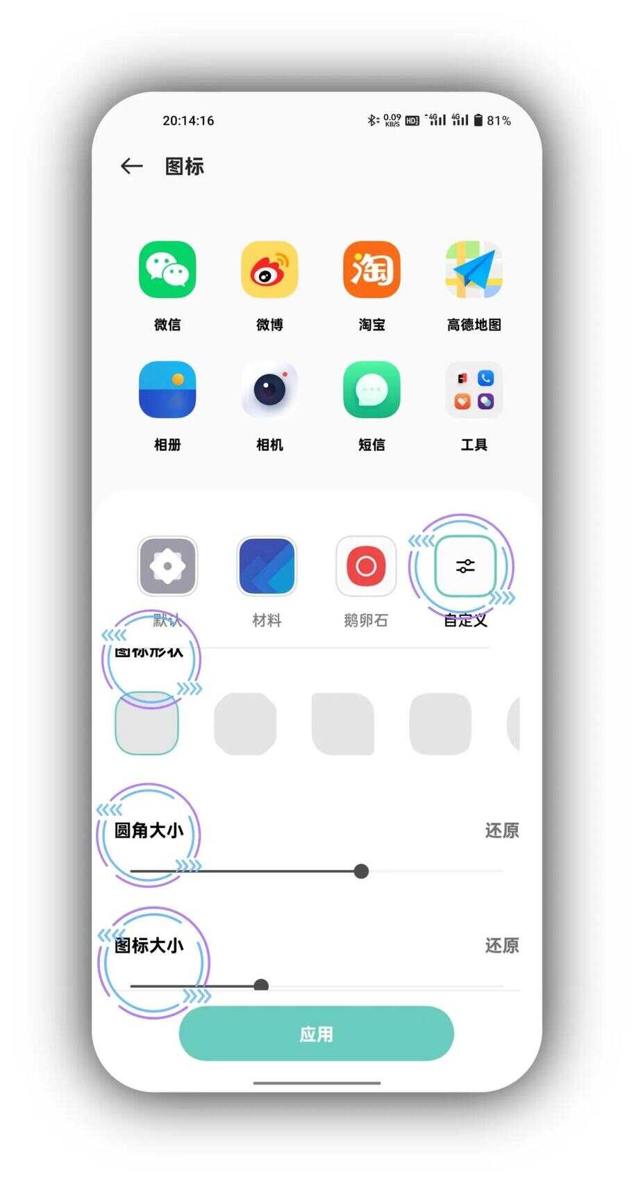 当然也可以去酷安下载自己喜欢的图标直接安装,就可以在此界面直接设置应用。