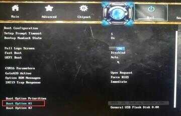 3、在Boot界面方向键往下移到“Boot Option #1”上面按enter回车,如下图所示: