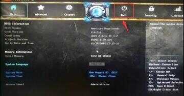2、键盘方向键往右移到“Boot”菜单上,如下图所示:
