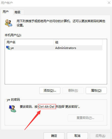 2、找到“netplwiz”程序并打开,可以看到跟之前win10操作会有些不同。修改密码的话需要按照提示按ctrl+alt+del键更改密码。我们按照快捷键打开。