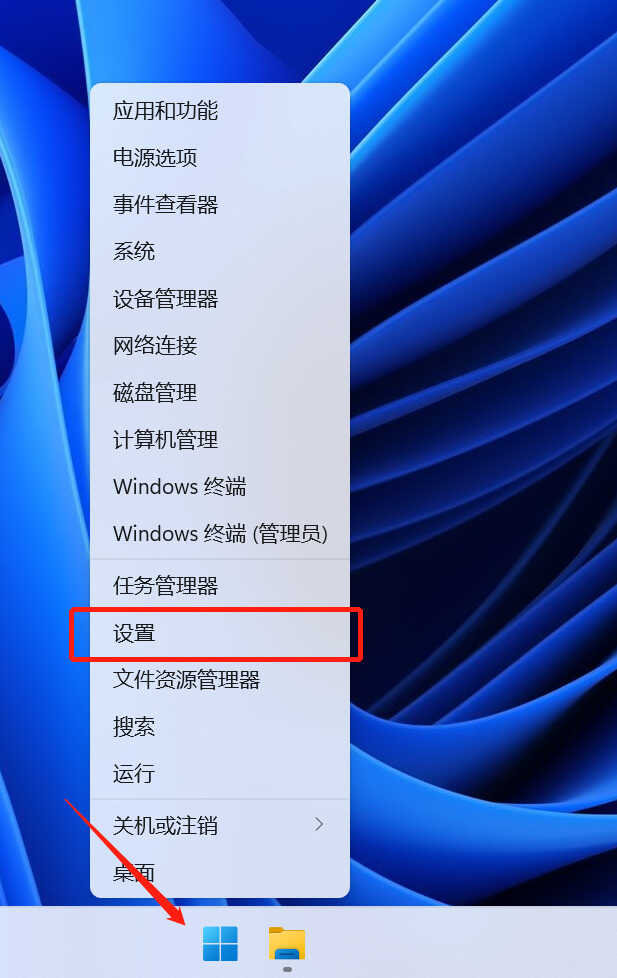 1.首先我们右键点击选择开始菜单,然后选择打开其中的“设置”选项;