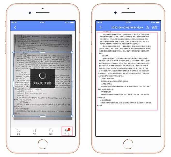纸质文档拍下来之后,开始调整识别区域,接着点击【下一步】,纸上文字就被识别出来了,并且可以自动帮你排版。