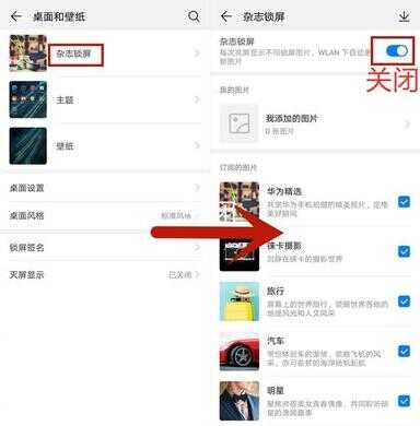 操作方法:打开设置→桌面和壁纸→杂志锁屏→将开启杂志锁屏关闭