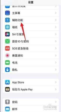 打开苹果手机设置,点击辅助功能。