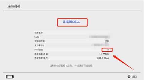【6】填入迅游界面所给出的信息(请确认信息填写无误)然后进行连接测试,NAT类型为A即表明加速成功,这个时候再进行下载更新就非常方便了,几乎可以达到任天堂限速下的最高速度。